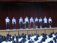 今日は、朝の集いで校歌の合唱練習がありました。3年生は1・2年生と向かい合って歌いましたが、堂々とした様子で歌うことができていました。