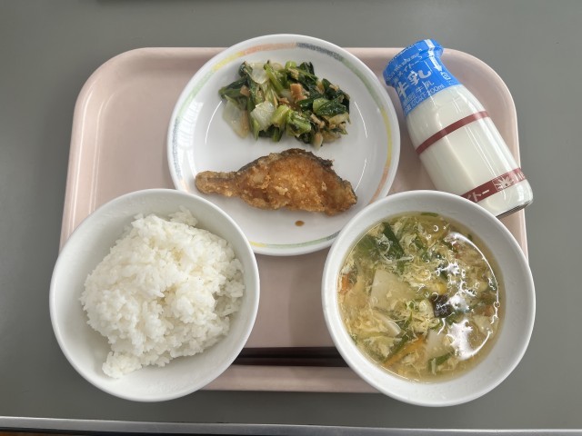今月の給食目標は、「栄養バランスを意識して食事をしよう」です。学校給食は、中学生のみなさんの1日に必要な栄養素の3分の1を摂れるように、献立を考えています。栄養バランスをよくするためには、6つの食品群を取り入れたり、主食・主菜・副菜・汁物を組み合わせたりするとよいです。