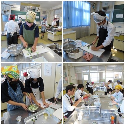 きゅうりの輪切りを綺麗にかつ多くつくり、マカロニサラダにして班で美味しく食べました♪