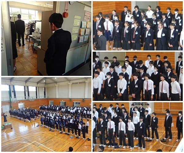 明日は、“新入生歓迎会”を行います。3年生の呼びかけで、今日の昼放課に、2・3年合同の合唱練習を行いました。呼びかけもさることながら、3年生の皆さんがいち早く整列し、準備を整えた様子に最上級生としての気持ちの表れを感じました。