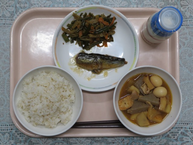 明日11月8日は、「いい歯の日」です。今日の給食は、かみごたえのある食材を使った献立です。よくかむことは、歯の健康につながります。よくかむことでだ液が出て、虫歯や歯周病を予防することができます。また、食べ過ぎを防ぐ、消化吸収を助ける、脳を活性化するなどの効果があります。普段からよくかんで食べることを意識しましょう。