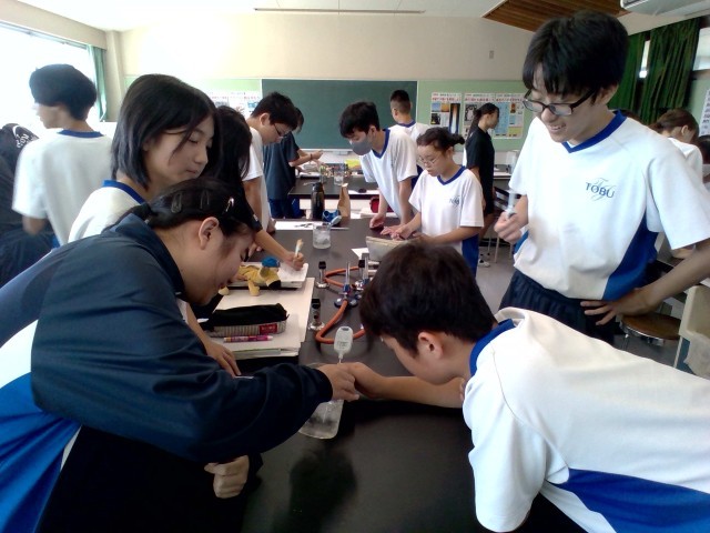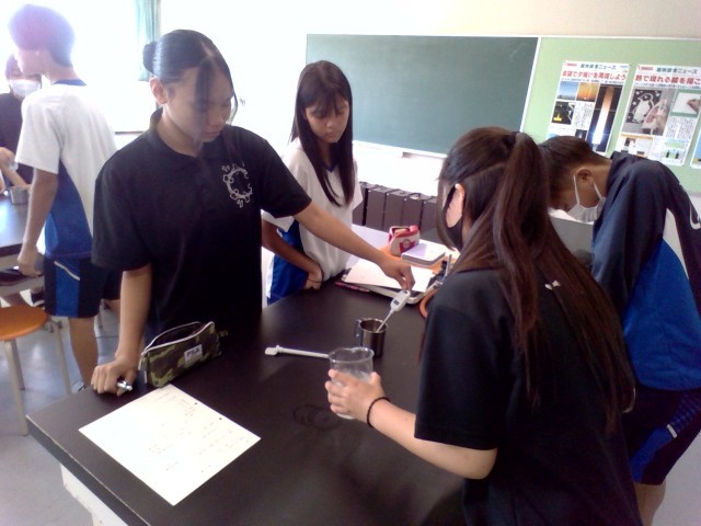 理科の授業では空気中の水蒸気が結露する温度を調べました。
