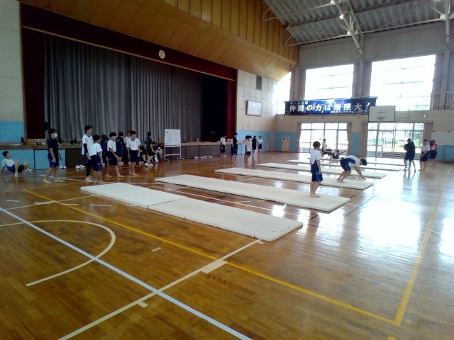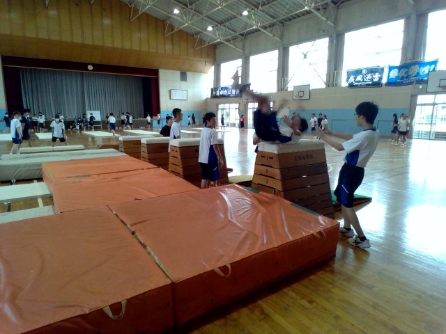英語と体育の授業の様子です。体育の授業では跳び箱とマット運動をやっていました。
