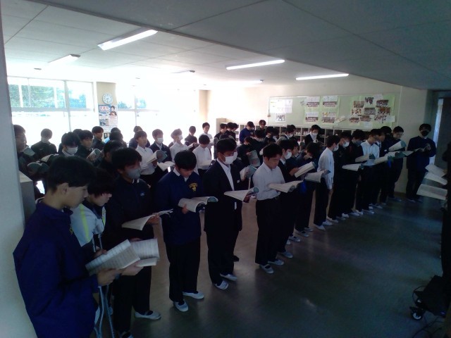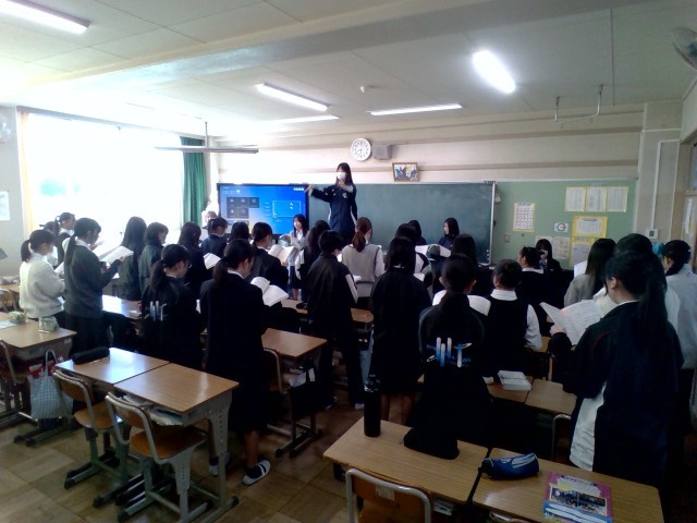 学年合唱の練習をしています。男女で合わせて歌っています。どのパートも上達してきています。