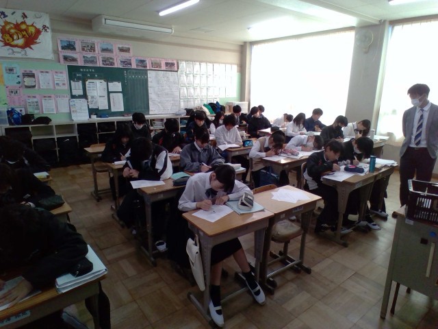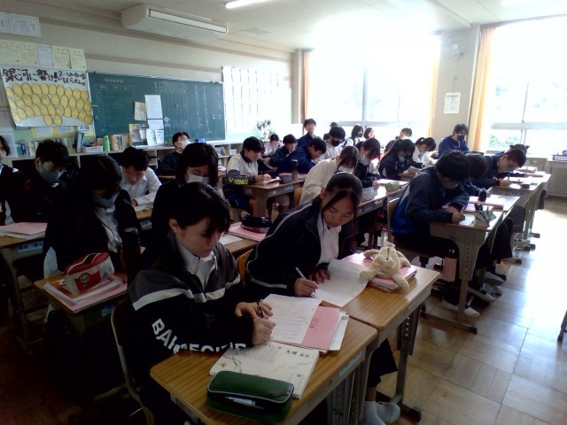 国語、数学、保健体育の授業の様子です。国語の授業ではプレゼンテーションについて学習していました。