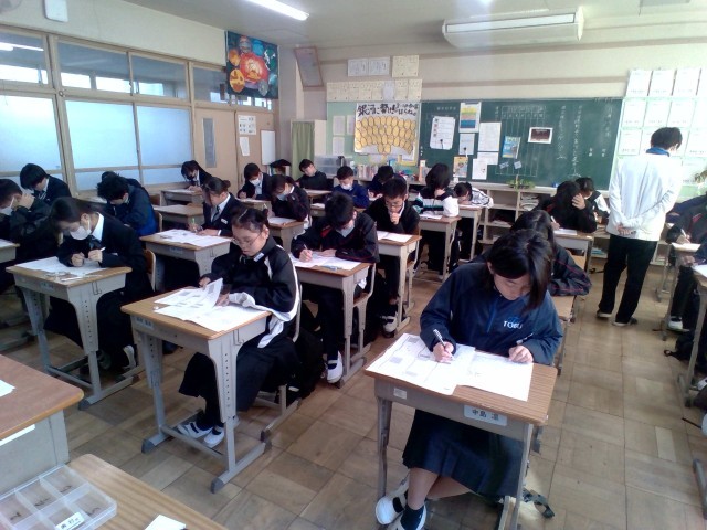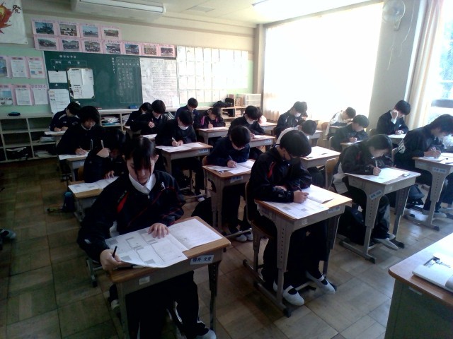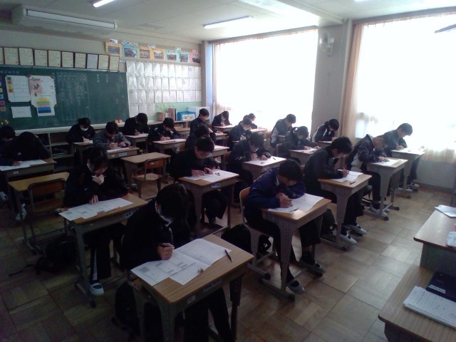 定期考査Ⅲの1日目です。みんな集中してテストに取り組んでいます。
