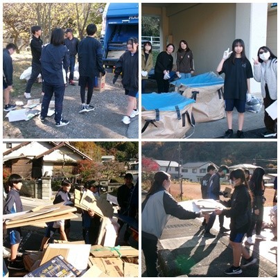 午後からはPTA資源回収がありました。今日はとても天気がよく暖かい日だったので、活動している生徒は暑くて半袖になる子もいました。中学生なので、自転車や徒歩で活動をがんばりました。そして保護者や地域の方々は車で回収してくださったことで早く終了することができました。PTAおよび地域の皆様、ありがとうございました。そして、中学生のみなさんも本当によくがんばりました。お疲れ様でした。収益金につきましては、学校行事等に活用させていただきます。