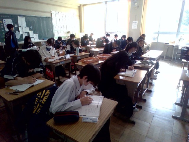 数学の授業では「図形の性質と証明」の確認テストを行っていました。