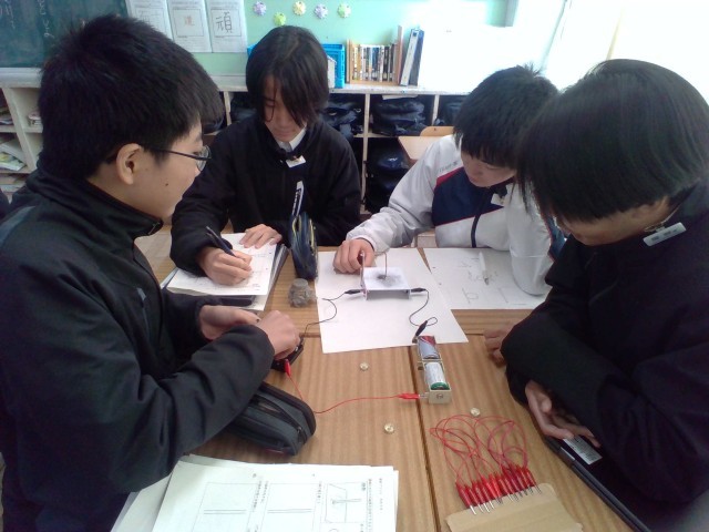 理科の授業では導線のまわりの磁界を実験から調べました。