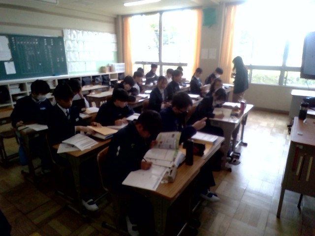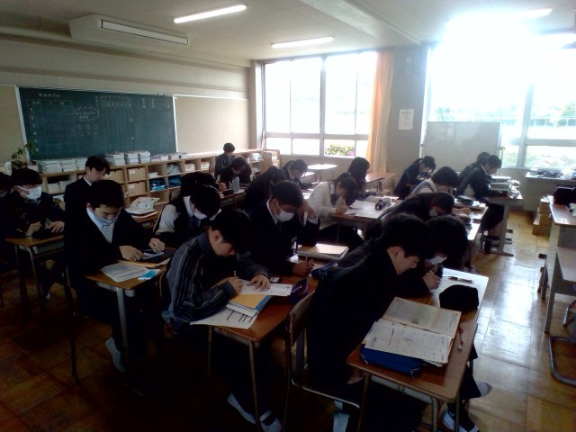 音楽の授業では名曲「花」の合唱練習を行いました。近々「歌のテスト」が予定されていることもあり、生徒たちは一音一音を大切に、真剣な表情で練習に励んでいました。