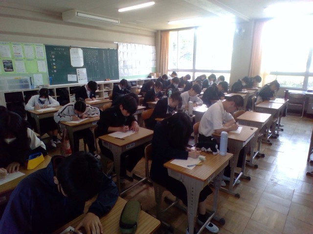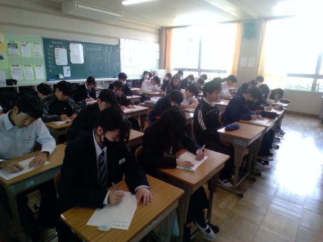 今朝はSF(国語)を行っています。自分で設定した目標や、15点以上の合格を目指して頑張っています。