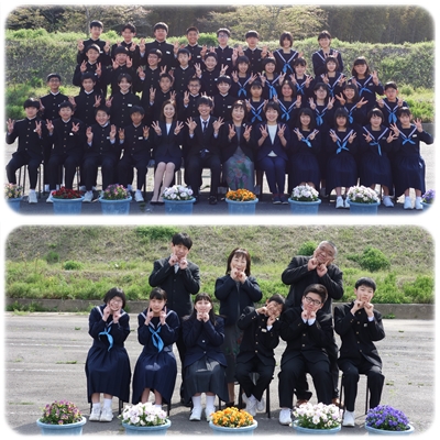 昨日の学級写真の様子です。カメラマンさんの撮影の後、クラスそれぞれのポーズでもう1枚ずつ撮影しました。澄み渡る青空の下、皆さんの笑顔がはじけました。