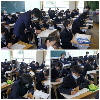 英語では、アルファベットを使って正しく書くための学習をしていました。