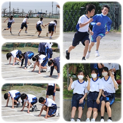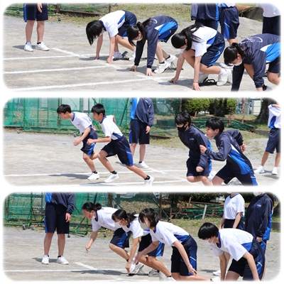 日差しが降り注ぎ、気温も高い中の授業でした。急な気温上昇は、体にとっては辛いものです。熱中症も心配されます。適宜休憩や水分補給を行いながら、短距離走の計測を行いました。