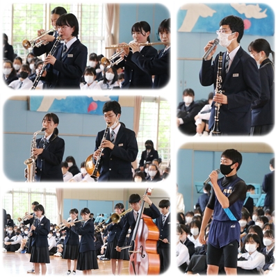 最後は美術部、吹奏楽部、陸上・駅伝部の紹介の様子です。陸上・駅伝部は有志で集まって活動しています。今、陸上練習に参加する人を募集しています。興味のある人はぜひ参加してみてください。