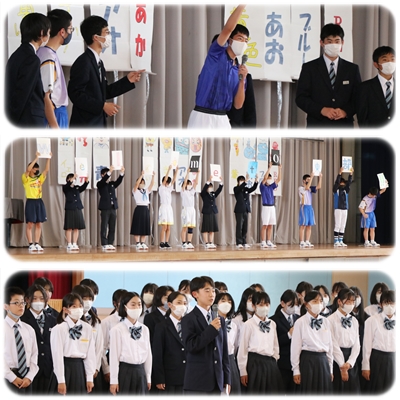最後に新入生へのメッセージ「Welcom to 東部!!」が披露されました。新入生代表のお礼の言葉も大変立派でした。