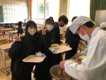 給食の様子です。今日は人気のメニューで、みんな喜んでいます!