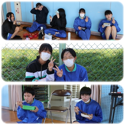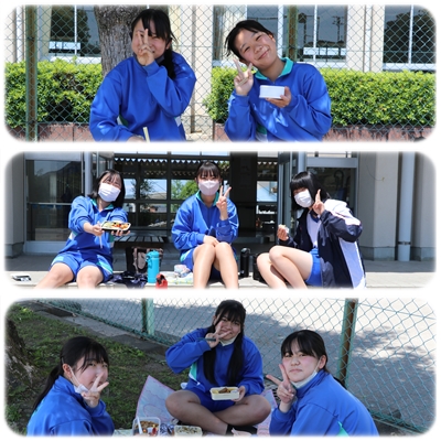 校庭、中庭、体育館で過ごしました。暑い1日でしたが、風は心地よく、過ごしやすい気候でしたね。それぞれが、好きな場所で楽しく会食できました。
