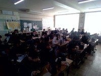 授業の様子です。体育では、体育大会の練習をしています!体育後の授業で、汗をかきながら意欲的に学習しています!