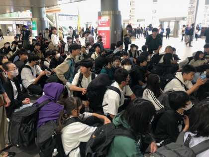 新横浜駅に到着です!みんなくたくたです、、、