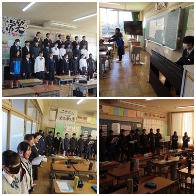 合唱際が来週に迫っています。どの学級も朝から素敵な歌声が響いてきます。寒い朝ですが、彼らの合唱を聴くと、心が温かくなります。