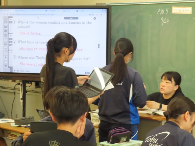 授業の様子です。数学は図形、理科は湿度や温度、英語は隣の仲間と長文読解をしています。体育祭が終わり、落ち着いた学校生活が戻ってきました。