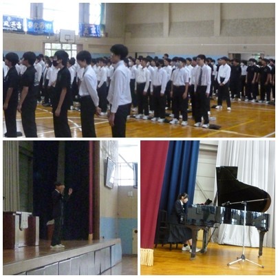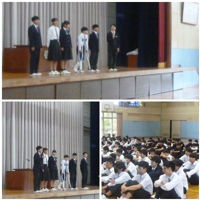 終業式を終え、前期に優秀な成果をおさめた生徒や部の表彰を行いました。後期もがんばっていこうという気持ちをもつことができました。
