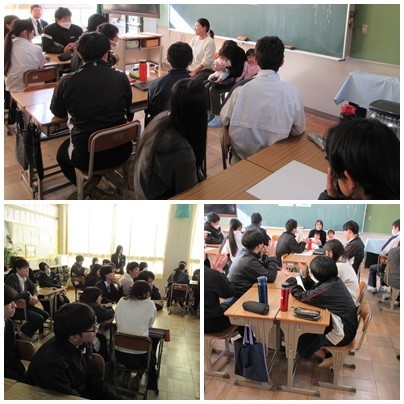 今日は3年生の教室で教育実習生による道徳の授業が行われました。高校入試の面接練習を場面にして、どのようにすれば礼儀正しくできるか考えることができました。