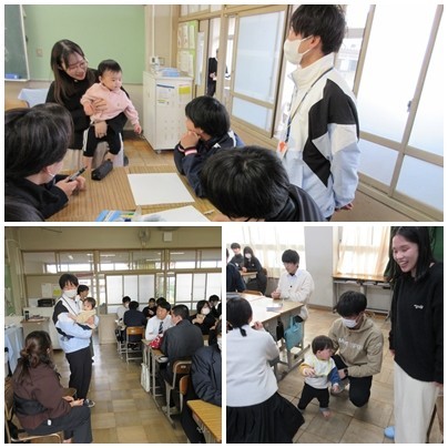 今日は健康ひろばを行いました。講師としてお母さんと、小さなお子さんが3年生の教室にやってきました。とてもかわいい子どもたちの姿を見て、生徒にも笑顔があふれていました。
