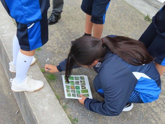 1年生の理科では、野に咲く草花を確認する学習をしています。「オオバコ」や「タンポポ」など、日頃当たり前に目にしている草花ですが、いざ探すとなると、なかなか見つかりません。写真と見比べながら、1種類ずつ見つけて記録しています。