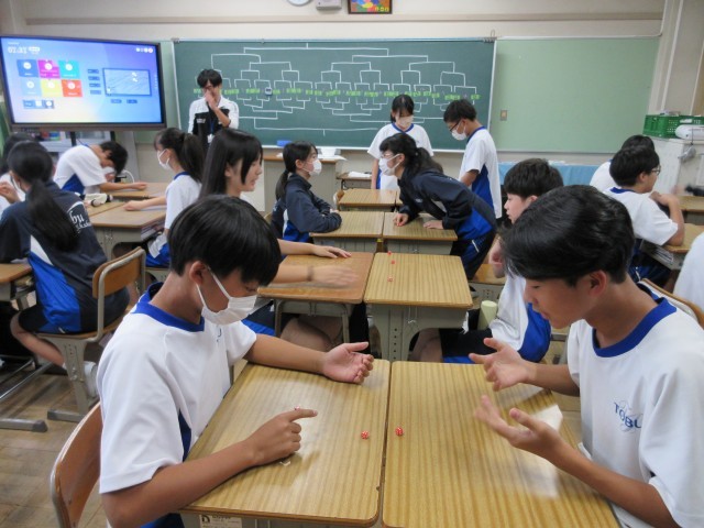 学年レクでドッジボール大会をしました。驚くほど速い球を投げる生徒もおり、盛り上がりました。