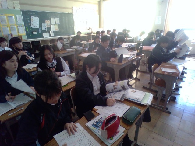 生徒たちは、それぞれ時間いっぱいまでテストに真剣に取り組んでいます。
