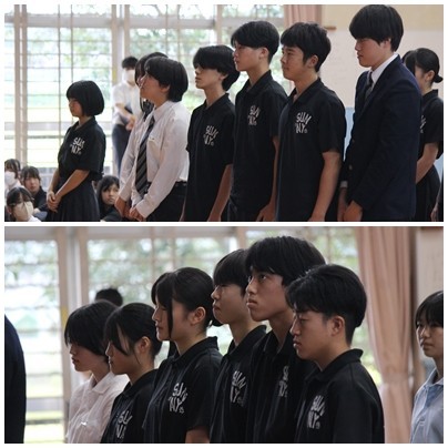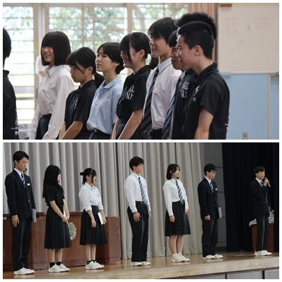 今朝は後期の始業式が行われました。会に先立ち、後期委員長と学級役員の認証式が行われ、代表としてふさわしい返事ができ、誇らしく感じました。
