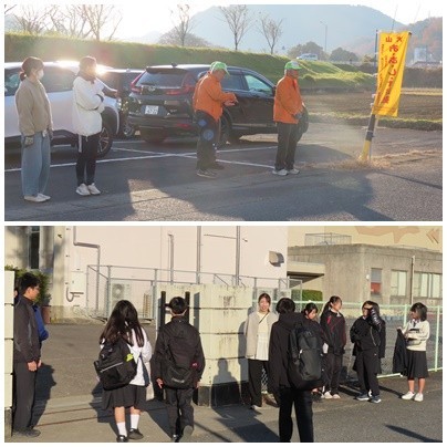 寒い朝でしたが、PTAと東コミュニティの皆様、そして生徒で2日目のあいさつ運動を行いました。寒い中でしたが、みんながあいさつを返してくれることに喜びを感じながら、活動できました。PTAと東コミュニティの皆様、ご協力ありがとうございました。